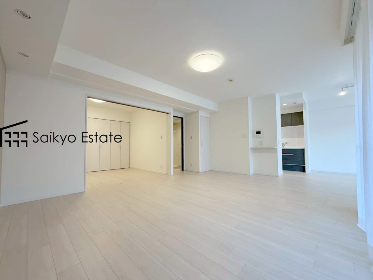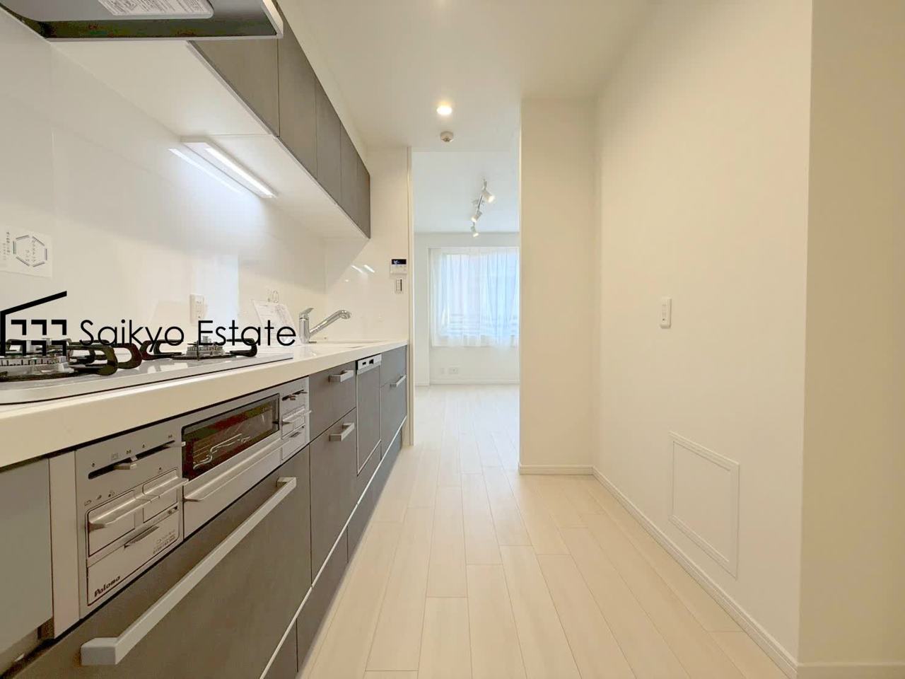 キッチンスペースは冷蔵庫や食器棚などを置くスペースが十分に確保されております。オシャレなカップボードを置きたくなりますね♪