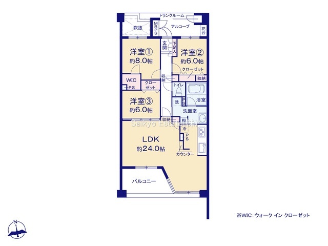 | 間取 | 3LDK (LDK24.0帖、洋室8.0帖、洋室6.0帖、洋室6.0帖) | ||