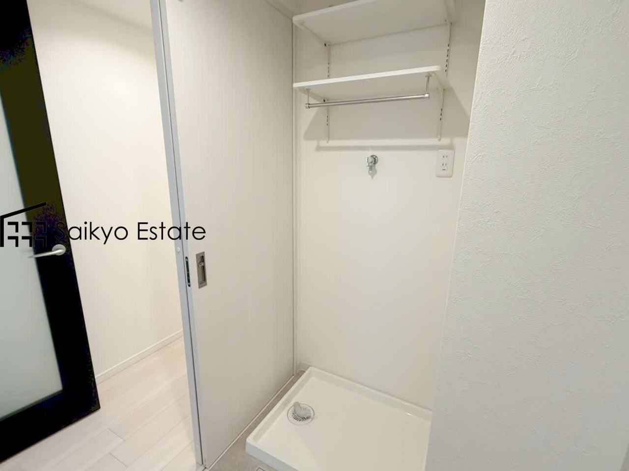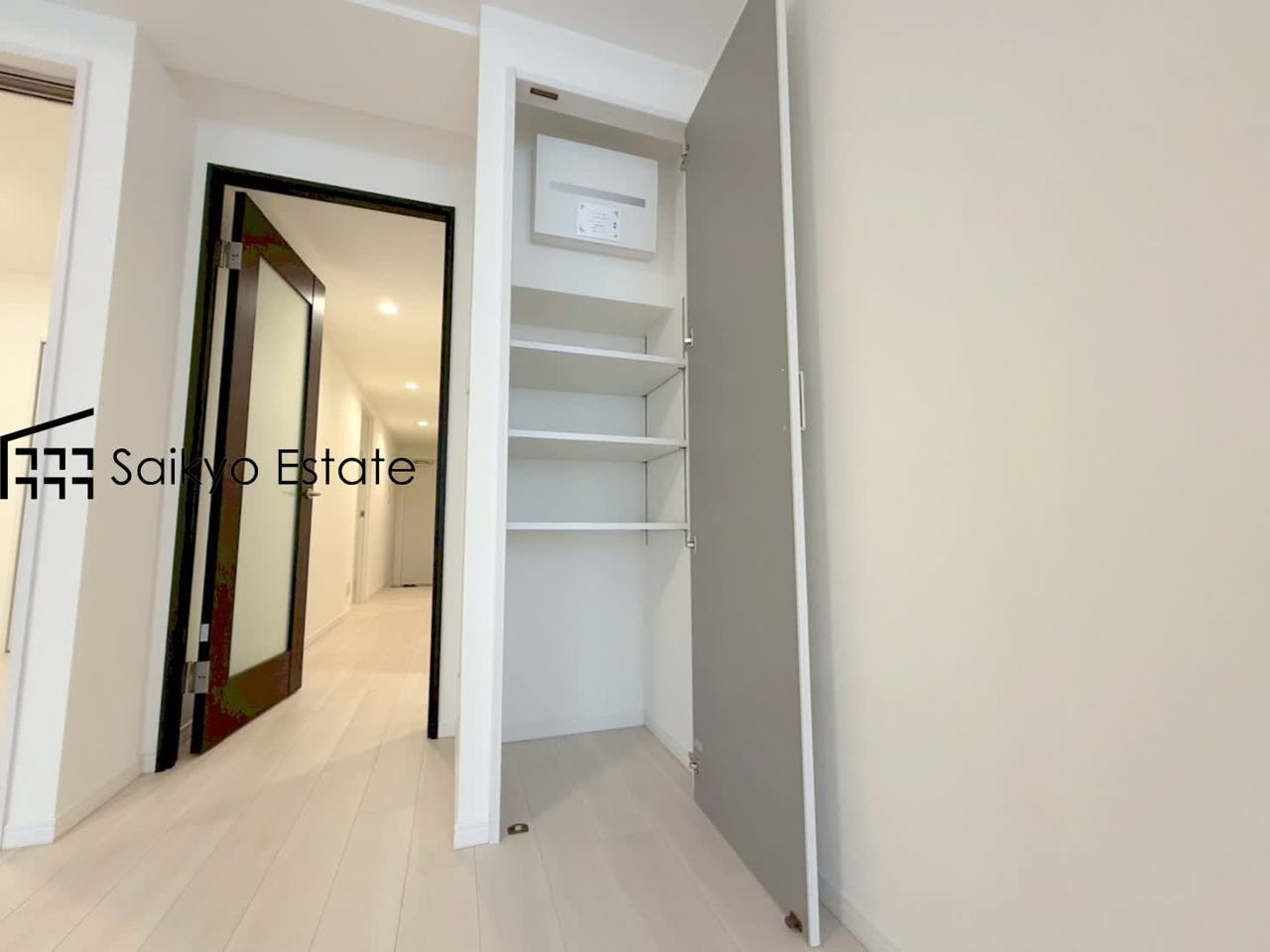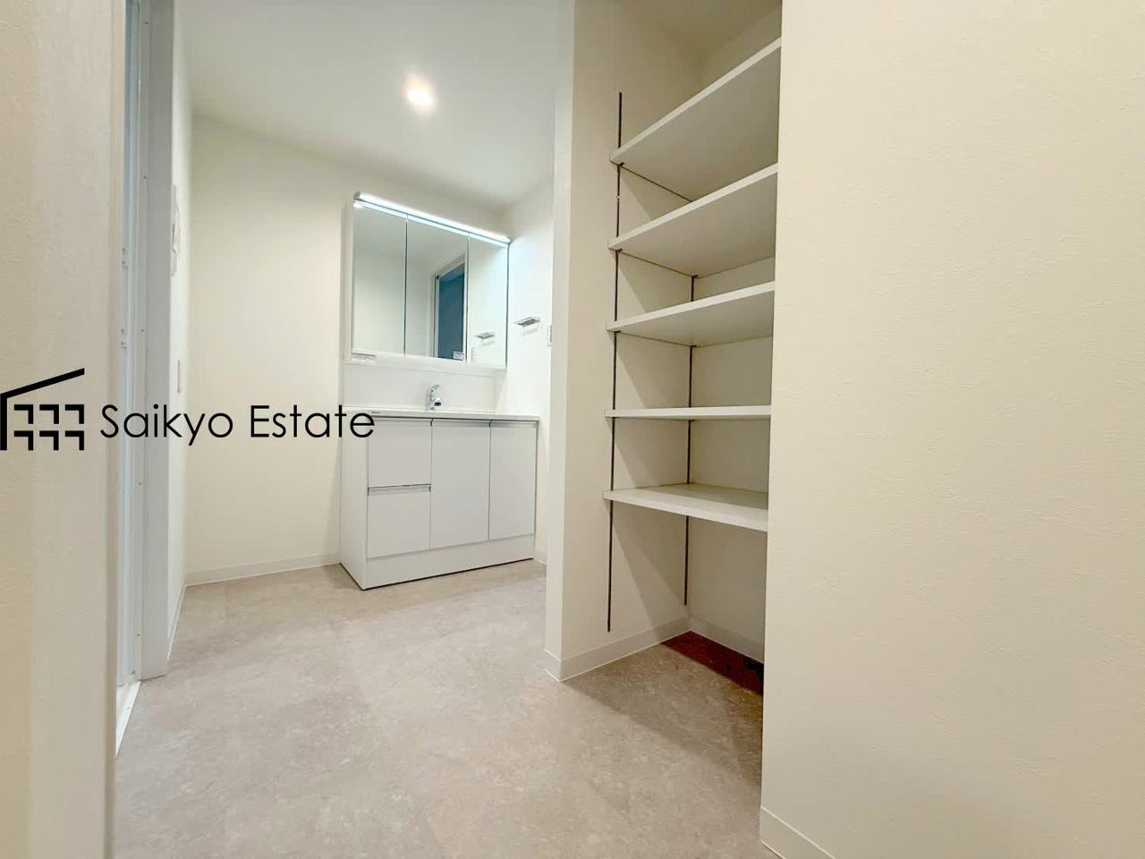 洗面室には収納スペースがございますので、リネン庫としてお使いいただけます。