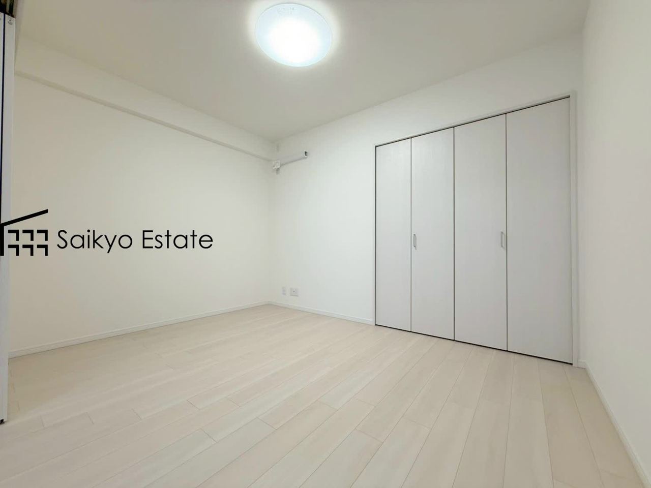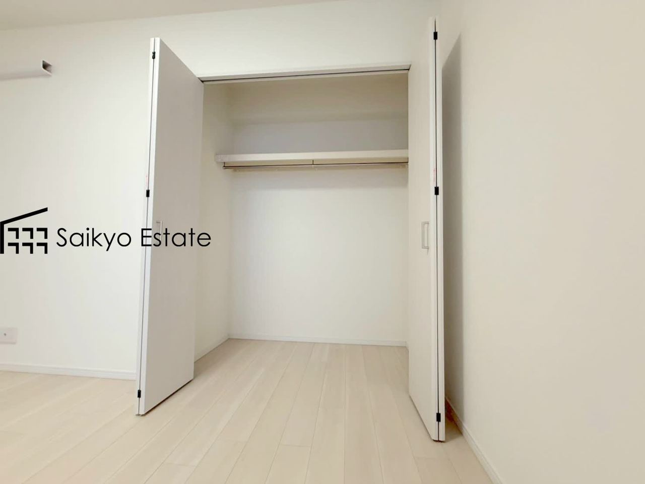 白を基調とした洋室は清潔感があり、落ち着いた空間です。木の温もりが優しいフローリングで、北欧風インテリアが似合いそうな空間です。