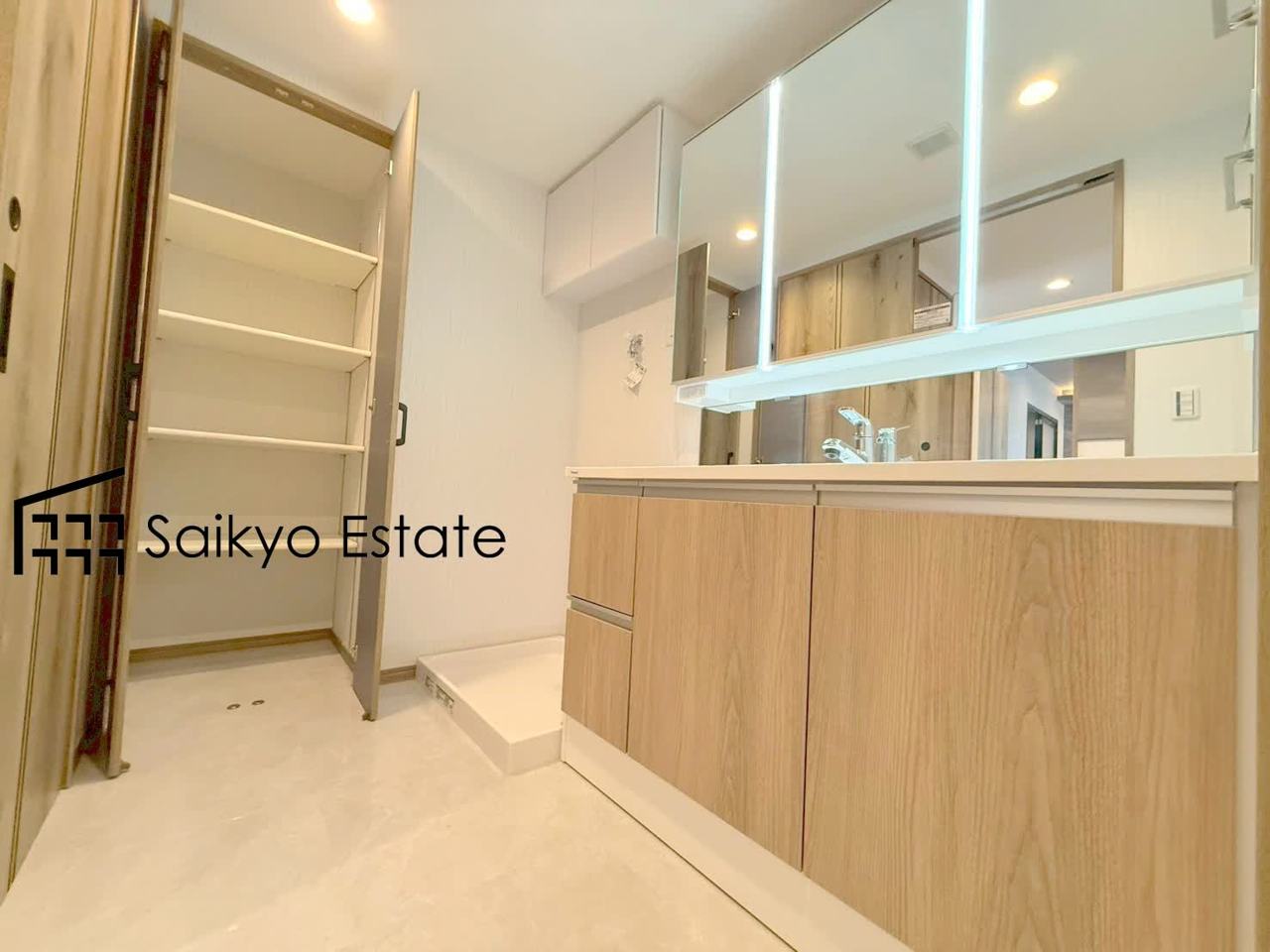 洗面所には収納スペースがございますので、リネン庫としてお使いいただけます。