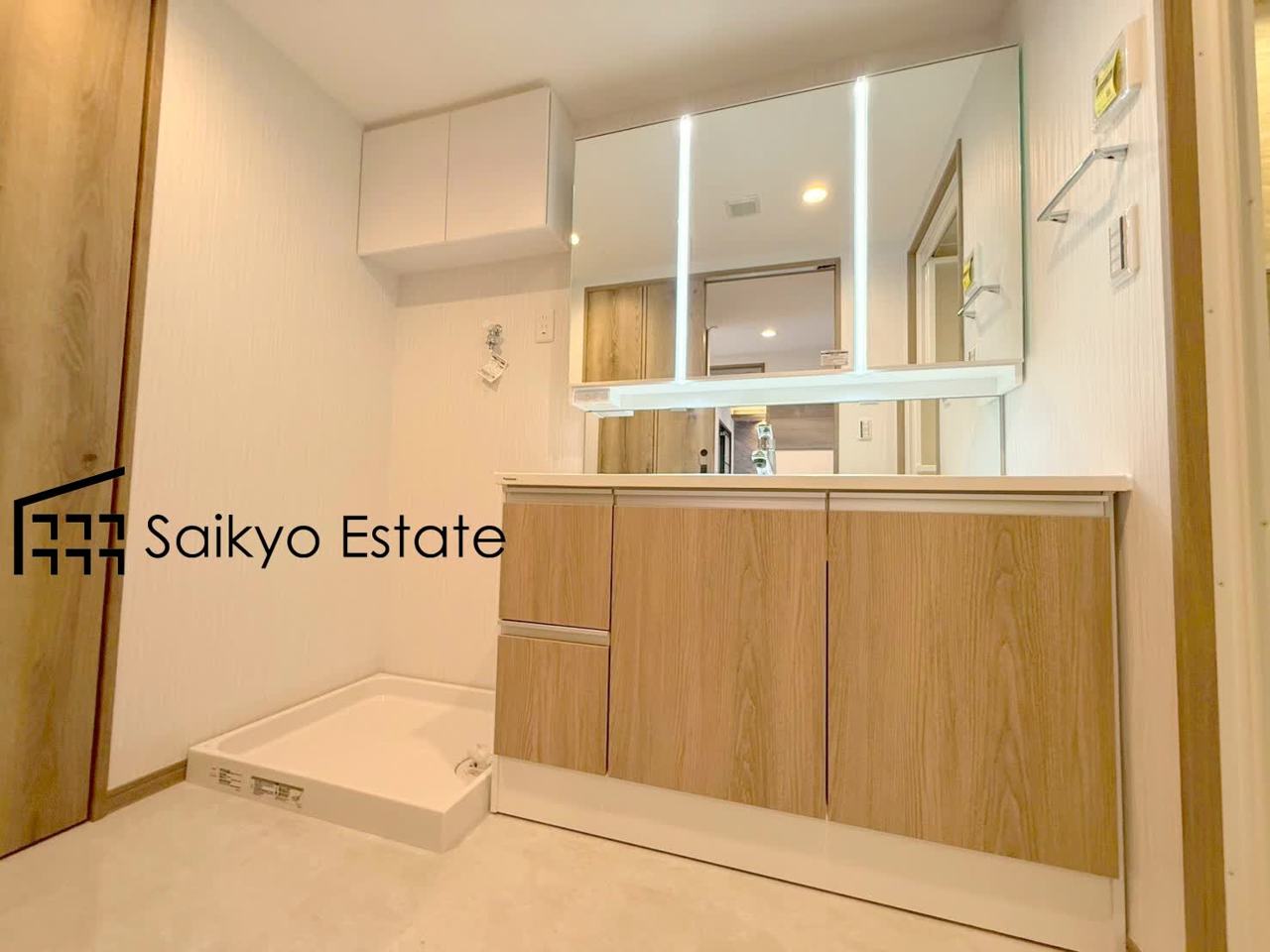三面鏡付きの洗面化粧台を完備。収納スペースも十分ございますので、ドライヤーなどすっきりと片付きます♪
