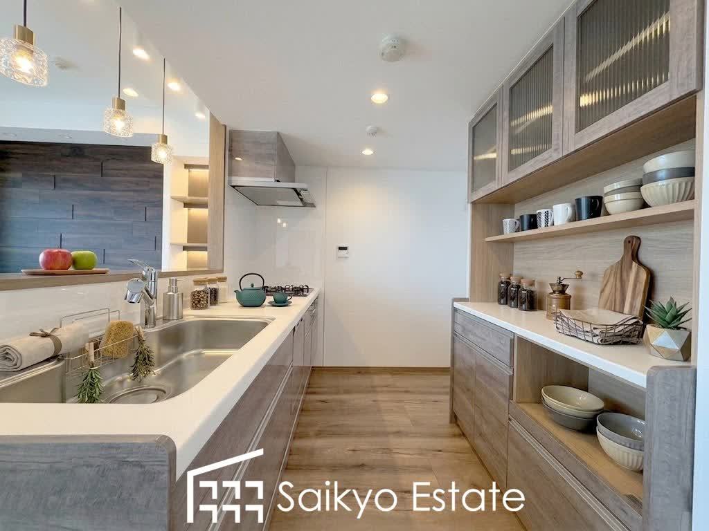 リビングにいる家族とコミュニケーションをとりながら作業が出来る人気のカウンターキッチン。お子様がリビングにいても目が届くので安心です。食洗機付きです!※家具や小物類はCG加工しています。