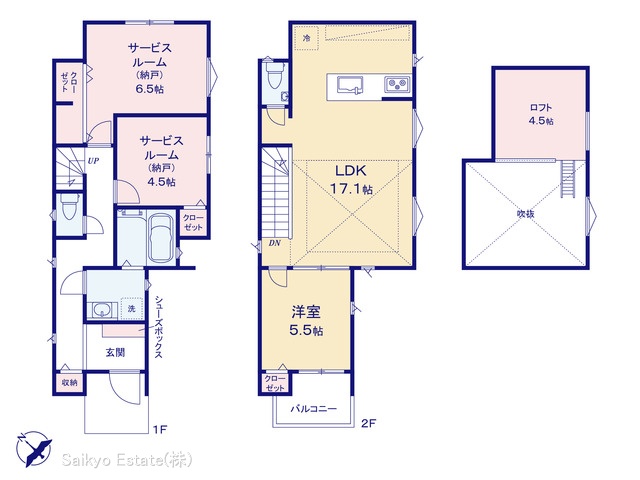 | 設備 | 公営水道、本下水、都市ガス 公共下水、24時間換気システム、吹き抜け、低層住居専用地域、シックハウス対策、バルコニー、照明器具、シャンプードレッサー、フローリング、火災警報器(報知機)、納戸 |