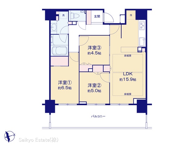 | 設備 | バルコニー、二重床、照明器具、フローリング、火災警報器(報知機)、エアコン、冷房、暖房、収納 | ||