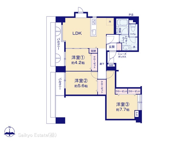 | バルコニー面積 | 7.14m² 西向き | ||