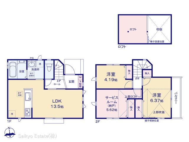 | 設備 | 公営水道、本下水、都市ガス 公共下水、24時間換気システム、吹き抜け、低層住居専用地域、複数路線利用可、シックハウス対策、バルコニー、照明器具、フローリング、火災警報器(報知機)、納戸、洗面室収納 |