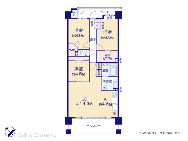 | バルコニー面積 | 12.8m² 南西向き | ||