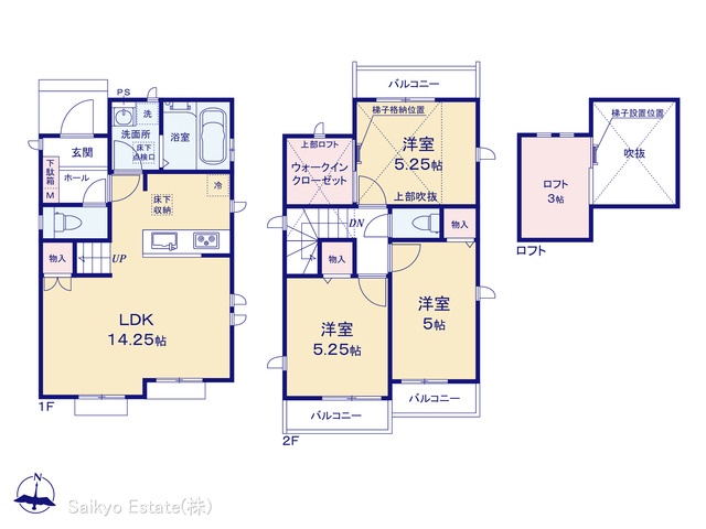 | 設備 | 公営水道、本下水、都市ガス 公共下水、24時間換気システム、吹き抜け、低層住居専用地域、シックハウス対策、バルコニー、両面バルコニー、照明器具、フローリング、火災警報器(報知機)、給湯 |