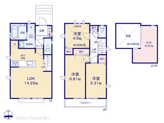 | 設備 | 公営水道、本下水、都市ガス 公共下水、24時間換気システム、吹き抜け、低層住居専用地域、シックハウス対策、バルコニー、照明器具、フローリング、火災警報器(報知機)、給湯 |