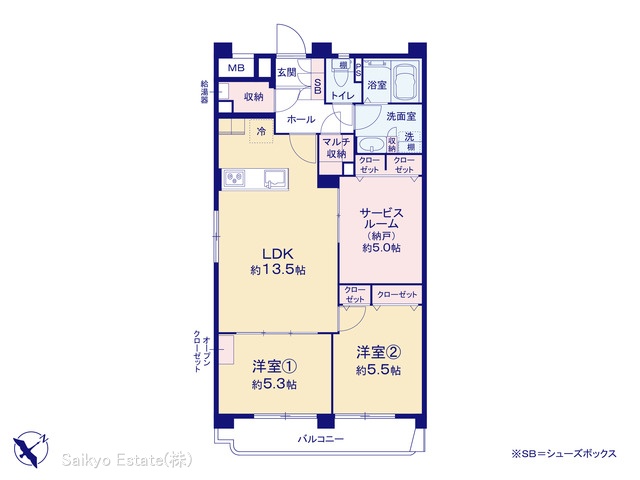 | 設備 | ペット相談、バルコニー、照明器具、フローリング、火災警報器(報知機)、給湯、収納 | ||