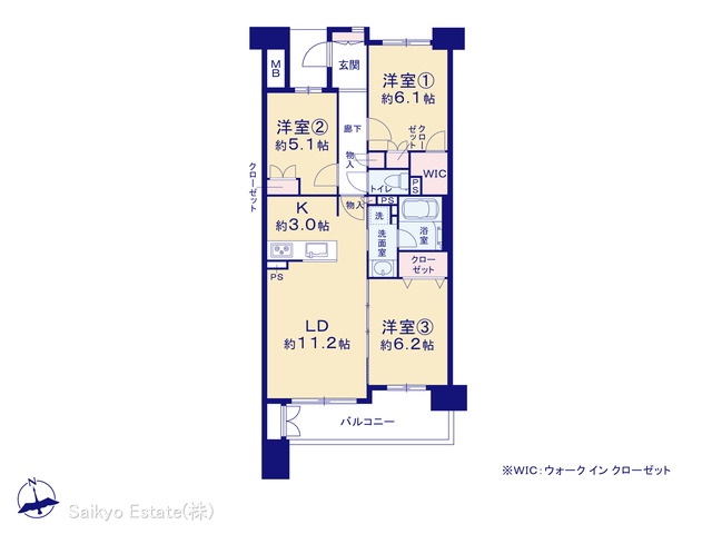 | 設備 | 管理人日勤、バルコニー、照明器具、フローリング、火災警報器(報知機)、収納 | ||