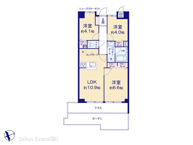 | 備考・制限等 | ペット:不可 事務所:不可 テラス面積:9.29平米 専用庭面積:16.04平米 専用庭使用料:480円/月 |